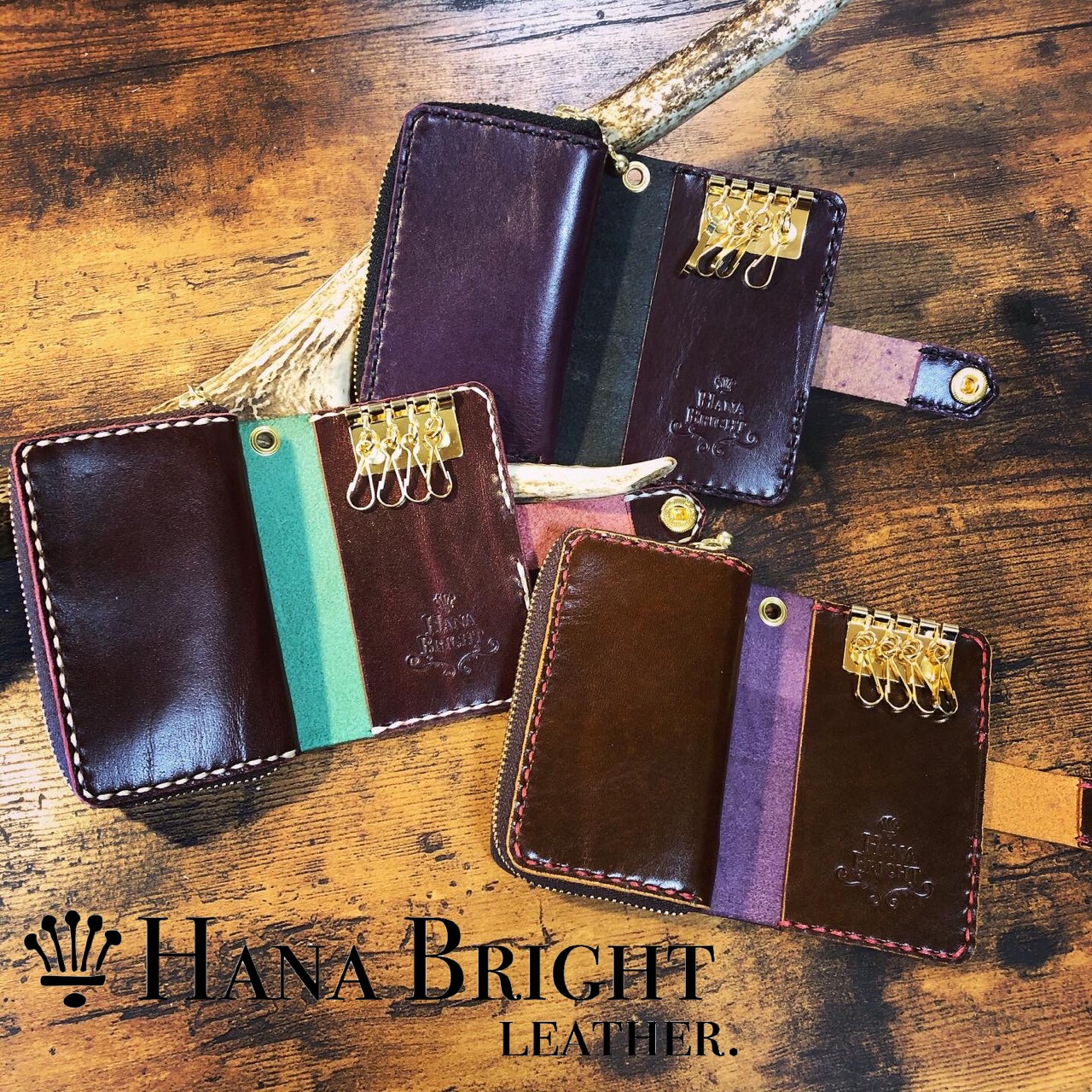 上の3つのキーケースも、それぞれ別々の方からのご注文ですが、どれも素敵な作品となっております(*'▽'*)